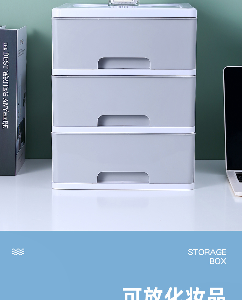 デスクトップ収納ボックス引き出し式オフィスデスクファイル文房具棚化粧台雑物デスク収納ボックスWT.M 3階(白+黒透明)