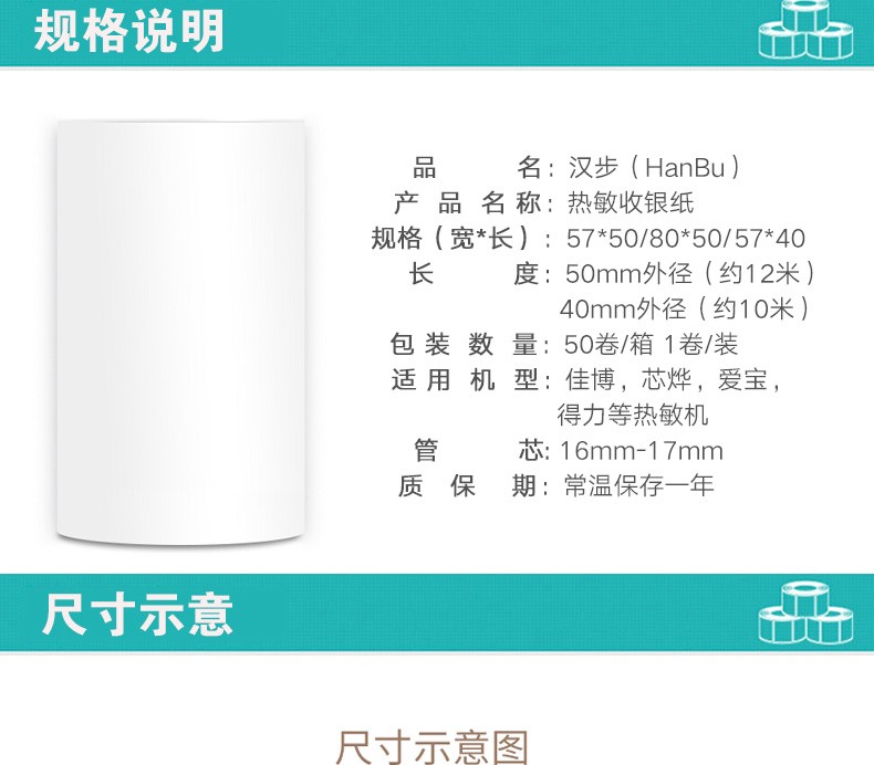 汉歩小票收银纸热敏印刷纸小票机専用小票纸收银纸热敏收银纸58 MM 80 M热敏プリンタ専用57*40 MM 2巻【商米v 1纸】【写真価格ブランドオファー】-