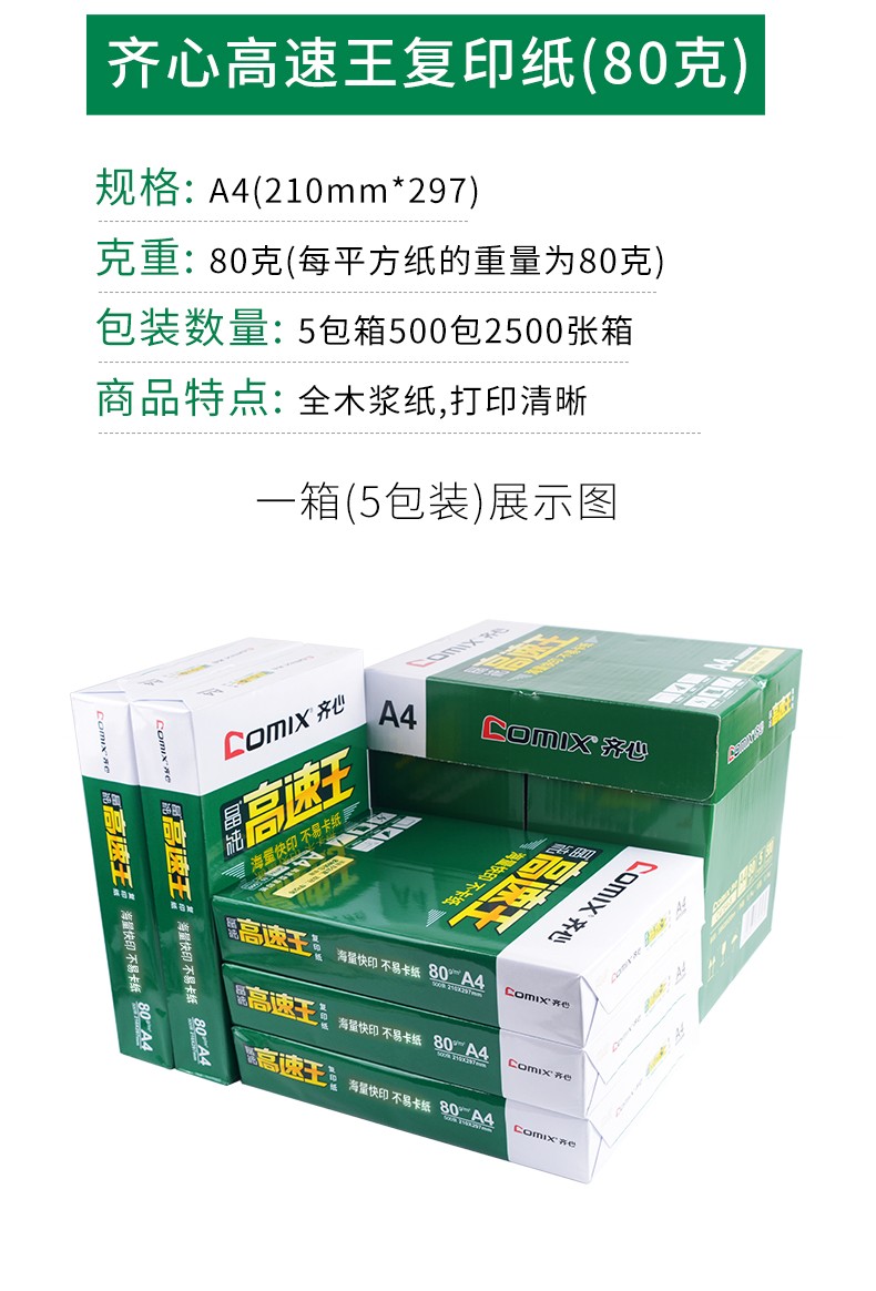 齐心(COMIX)高速王A4打印纸草稿纸70g复印纸单包500张80g多機能オフィス用纸白纸整箱批发 80g-A3【单包-500张】【图片 价格 品牌 报价】-